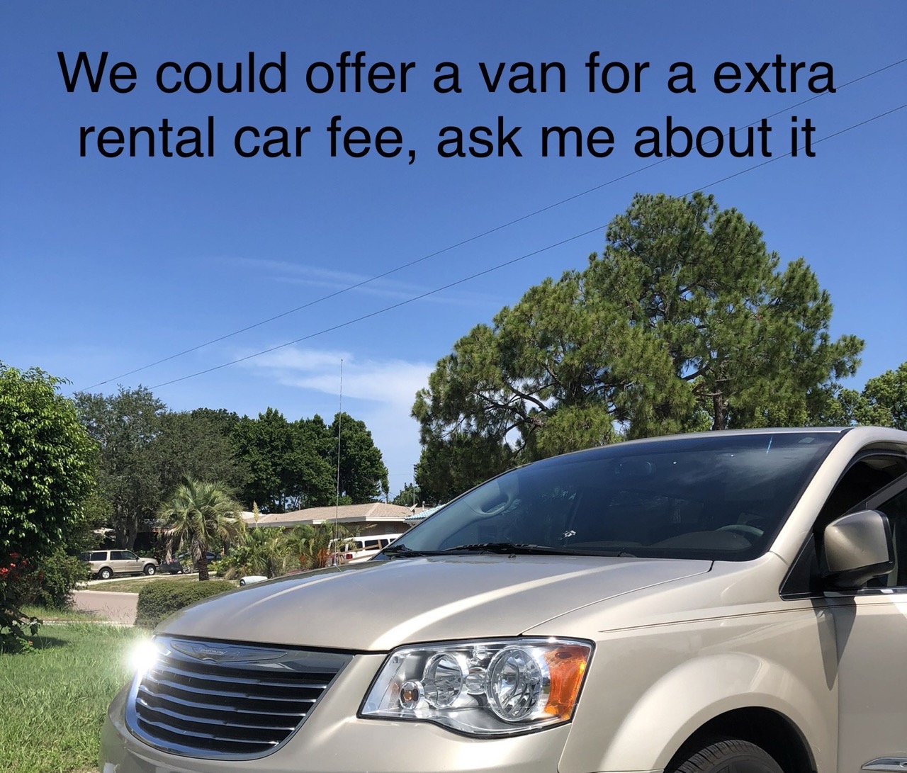 Also we can offer you our car. Our spacious van accommodates up to 7 people with comfortable leather seats and a DVD player.