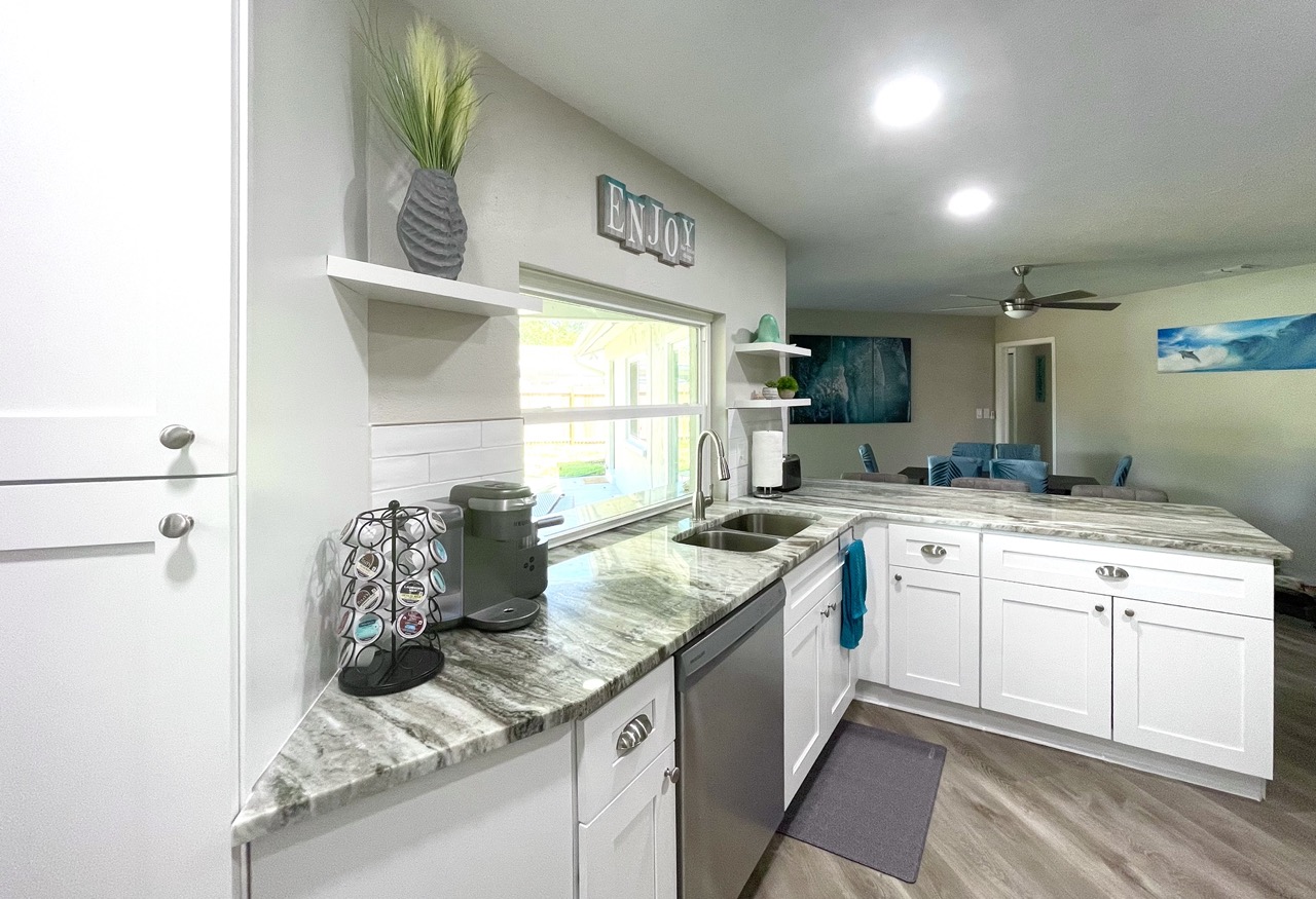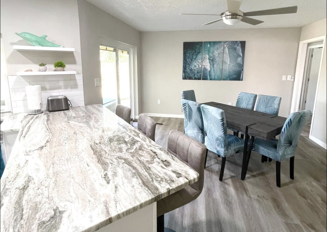 From the moment we entered through those grand double doors, we knew Dolphin House was special. The modern design, coupled with the cozy living space and high-end kitchen, set the stage for a relaxing stay. The kids were overjoyed with the pool and counting all the dolphins for a discount became a fun game. Also, the cleanliness and maintenance of this place are top-notch. Definitely booking again!